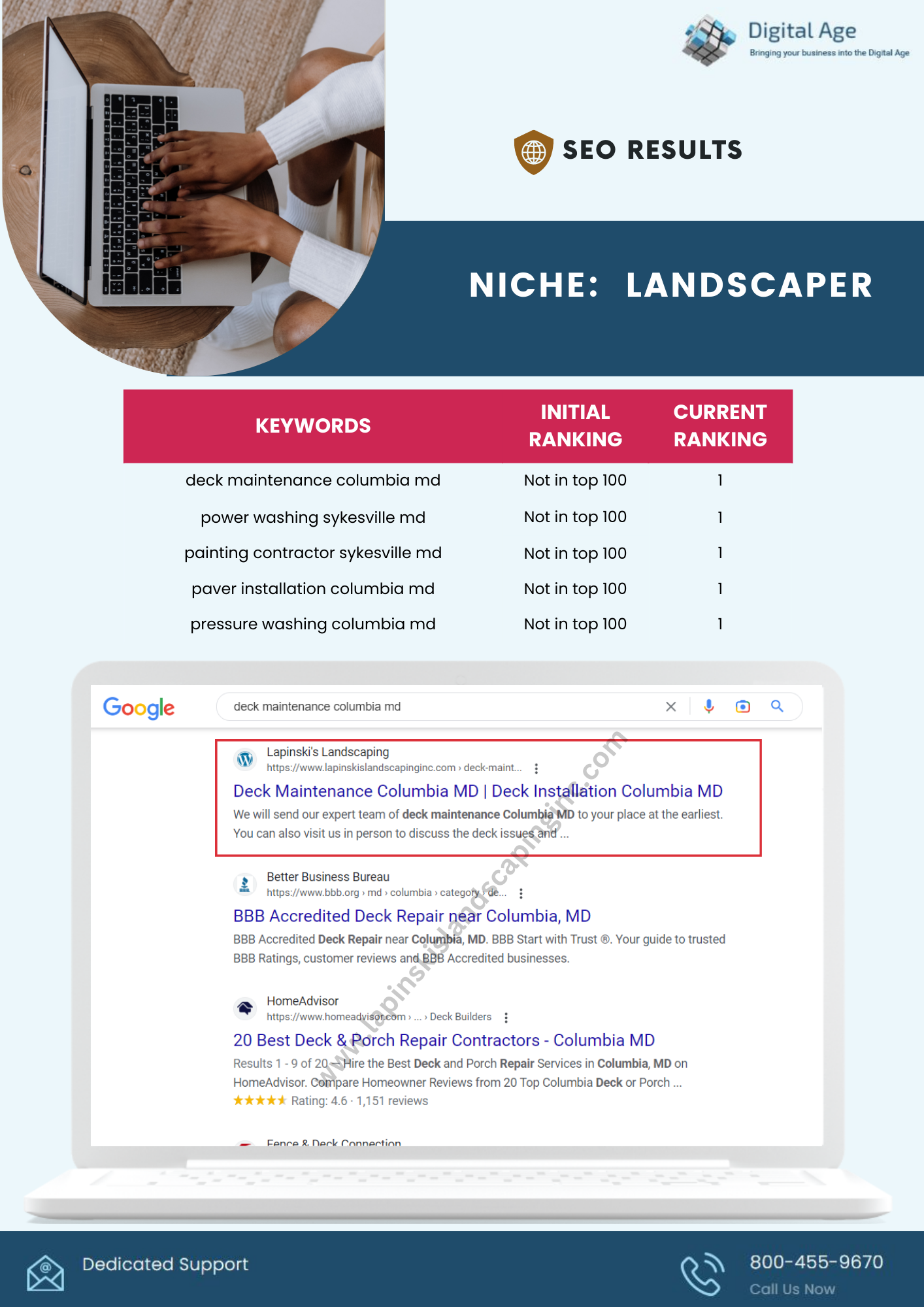 We've secured 1st page ranking success for numerous small businesses across the US, helping them increase visibility and drive growth.